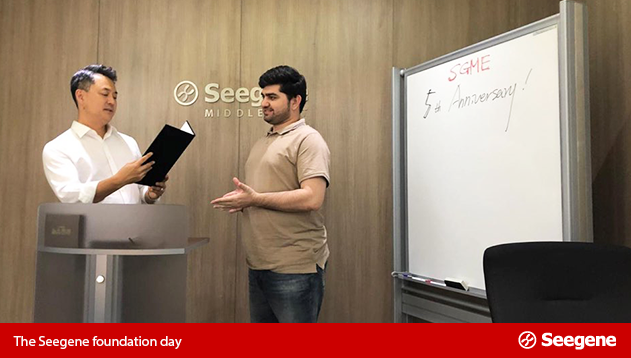 This year, a total of 8 employees including two board members who worked for 10 consecutive years and 15 consecutive years, respectively, were awarded. They have worked hard for Seegene so that Seegene could have grown without wavering. Also, they have worked hard in business, marketing, manufacturing, research and office business. Furthermore, for awarding their efforts, gold cards whose weight was proportional to their years of working and sabbaticals of one month were presented to them. Meanwhile, at the branches of the Middle East and Mexico, surprise events were held on this foundation day.