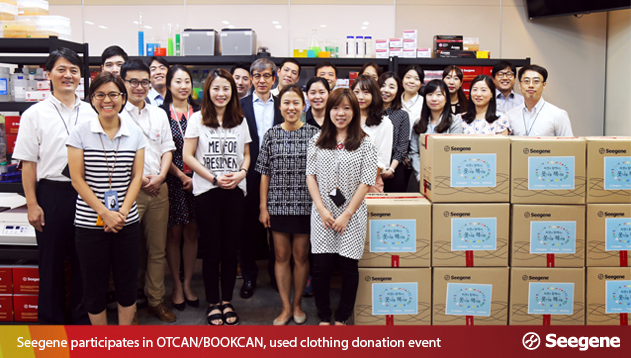 As a means of fulfilling its core corporate value of social contribution, Seegene participates in an OTCAN donation event every year. This year, from June 10 to 30, a company-wide drive was held to collect used items. Approximately 200 sets of used clothing, bags, shoes and 80 used books were donated to OTCAN/BOOKCAN.