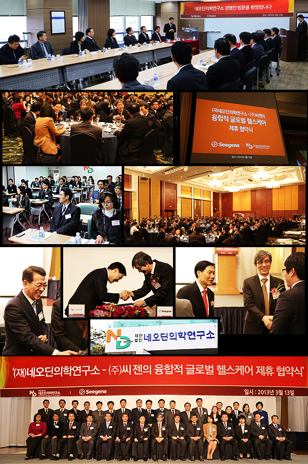 This last March 13th, Seegene held a collaboration ceremony with the Neodin Medical Institute at the Lotte Hotel. Both companies plan to collaborate in developing molecular diagnostic test reagent and system R&D as well as invest in establishing a global testing center. Also, there will be a mutual cooperation between the two companies in all divisions in order to further develop and refine products and improve administration within the companies.