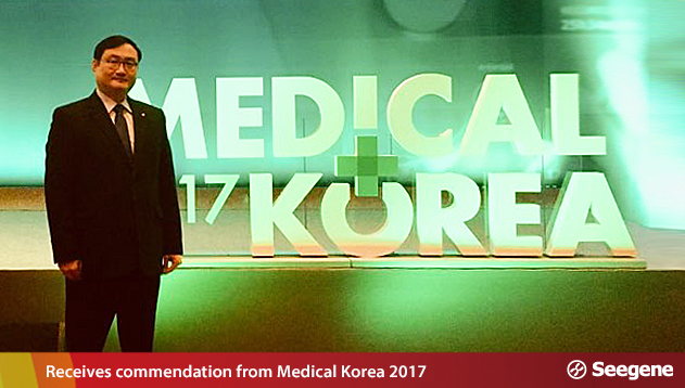 On November 21, Seegene Middle East President Park Ji-hoon received a commendation from the Minister of Health and Welfare at Medical Korea 2017, hosted by the Ministry of Health and Welfare, and supervised by the Korea Health Industry Development Institute.