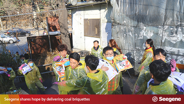 On December 3, 2016, 40 Seegene employees and executives worked together to deliver coal briquettes to individual households in Guryong Village, a shantytown in Seoul’s Gangnam district, as a part of the company’s efforts to support the local community.