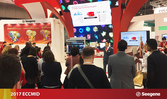 From April 22 to 25, Seegene participated in ECCMID 2017 (ECCMID: European Congress of Clinical Microbiology and Infectious Diseases), which was held in Vienna, Austria this year. At the congress, Seegene presented the new concept called ‘All MDx Assays in One Platform’, which means that diverse molecular diagnostics test can be performed in one platform. Also, through the Seegene Integrated Symposium at ECCMID 2017, clinical utility and performance of Seegene’s Allplex™ products for respiratory, gastrointestinal and sexually transmitted infections were verified, receiving a lot of attention from clinical practitioners from all over the Europe.