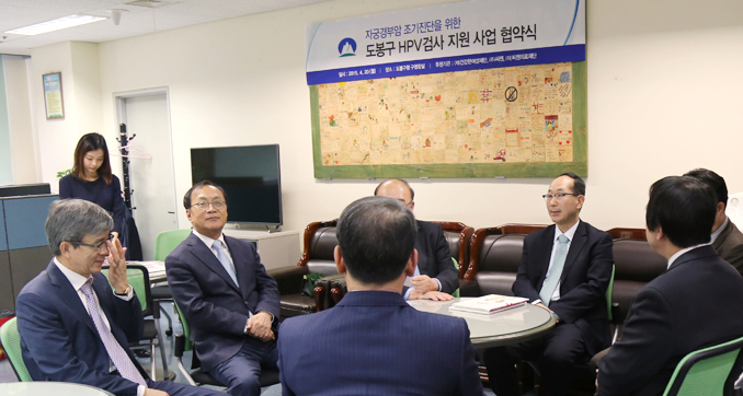 On April 20, Seegene became a sponsor organization of the HPV (Human Papillomavirus) DNA Test Campaign, for which an agreement was signed on April 20 by Dobong-gu Office and the Women’s Health Foundation. Seegene will provide the funding necessary to offer free HPV DNA testing at cervical cancer diagnostic centers in Dobong-gu as well as at the Dobong-gu Health Center. HPV is the main cause of cervical cancer, which is the leading cause of cancer-related death in the female population worldwide.