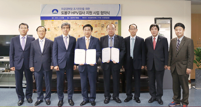 According to the agreement, female residents of Dobong-gu who have been chosen to receive cervical cancer testing or are eligible for medical care assistance from the National Health Insurance Service, will receive free HPV DNA testing in addition to the regular Pap test. The HPV DNA test provided by Seegene for this campaign is capable of genotyping 28 HPV pathogens (19 high-risk HPVs and 9 low-risk HPVs that do not directly cause cancer but may cause genital warts), determining whether the subject is infected, and co- or multiple infections.