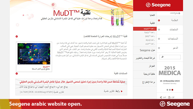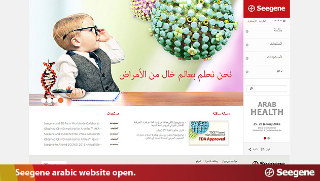 On January 12, 2016, Seegene officially launched its Arabic website. In conjunction with the founding of its Middle East subsidiary, the company created a version of its website for the Arabic region in the local language so that it can be easily accessible and serve as a more direct avenue of corporate promotion.
